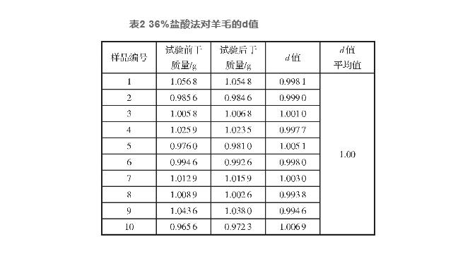 (2)經(jīng)實(shí)驗(yàn)認(rèn)證,36%硫酸法對(duì)羊毛絨的d數(shù)值1.00。