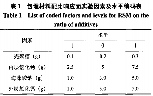 (3)響應(yīng)面法提升包埋原材料的加上配制