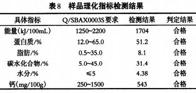 依據(jù)上述實(shí)驗(yàn)最后明確高鈣奶營(yíng)養(yǎng)成分蛋白粉的原材料、秘方、預(yù)混加工工藝等,進(jìn)行高鈣奶營(yíng)養(yǎng)成分蛋白粉的試產(chǎn)實(shí)驗(yàn)。干混研發(fā)50kg高鈣奶營(yíng)養(yǎng)成分蛋白粉,認(rèn)證干混實(shí)際效果,并依據(jù)GB7101和產(chǎn)品標(biāo)準(zhǔn)Q/sBAx0003s《上海市食品安全企業(yè)標(biāo)準(zhǔn)高鈣營(yíng)養(yǎng)蛋白質(zhì)粉(固體飲料)》對(duì)商品重要指標(biāo)值檢測(cè)分析。