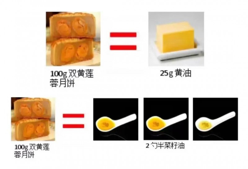 一個185g雙黃蓮蓉月餅的脂肪油成分為43g,等同于4個半白釉勺的植物油脂量,且在其中碳水化合物成分約600mg(每天每人碳水化合物攝取量一般不超過300mg)。